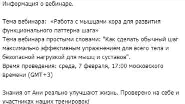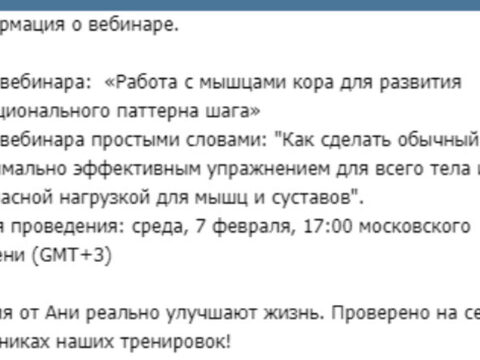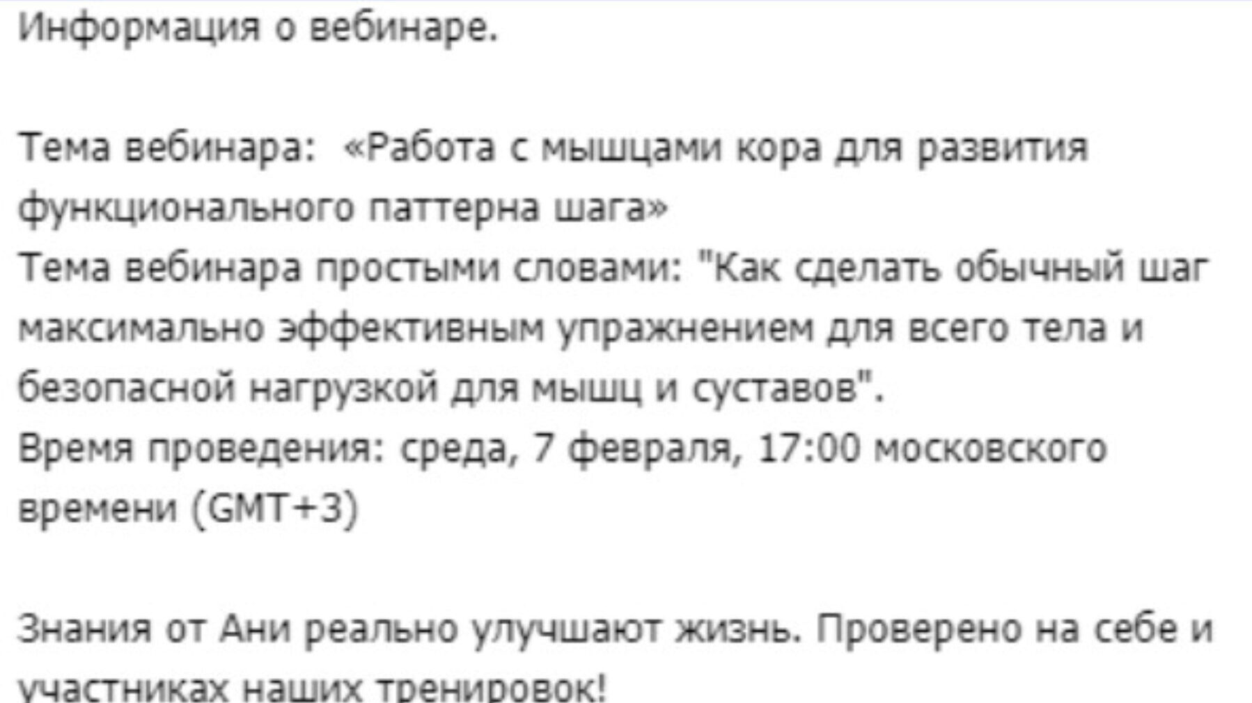 Тема вебинара простыми словами: «Как сделать обычный шаг максимально эффективным упражнением для всего тела и безопасной нагрузкой для мышц и суставов».
