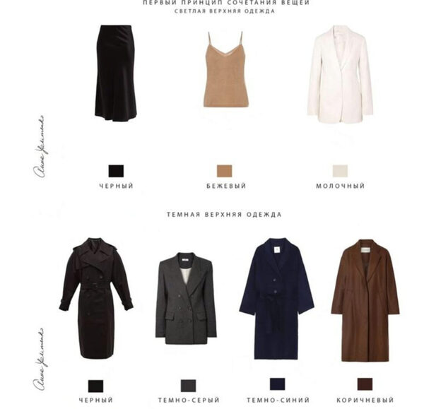 В третьем уроке разберем первый принцип сочетания вещей и конкретную схему, которую вы сможете использовать для создания гармоничных образов на каждый день.