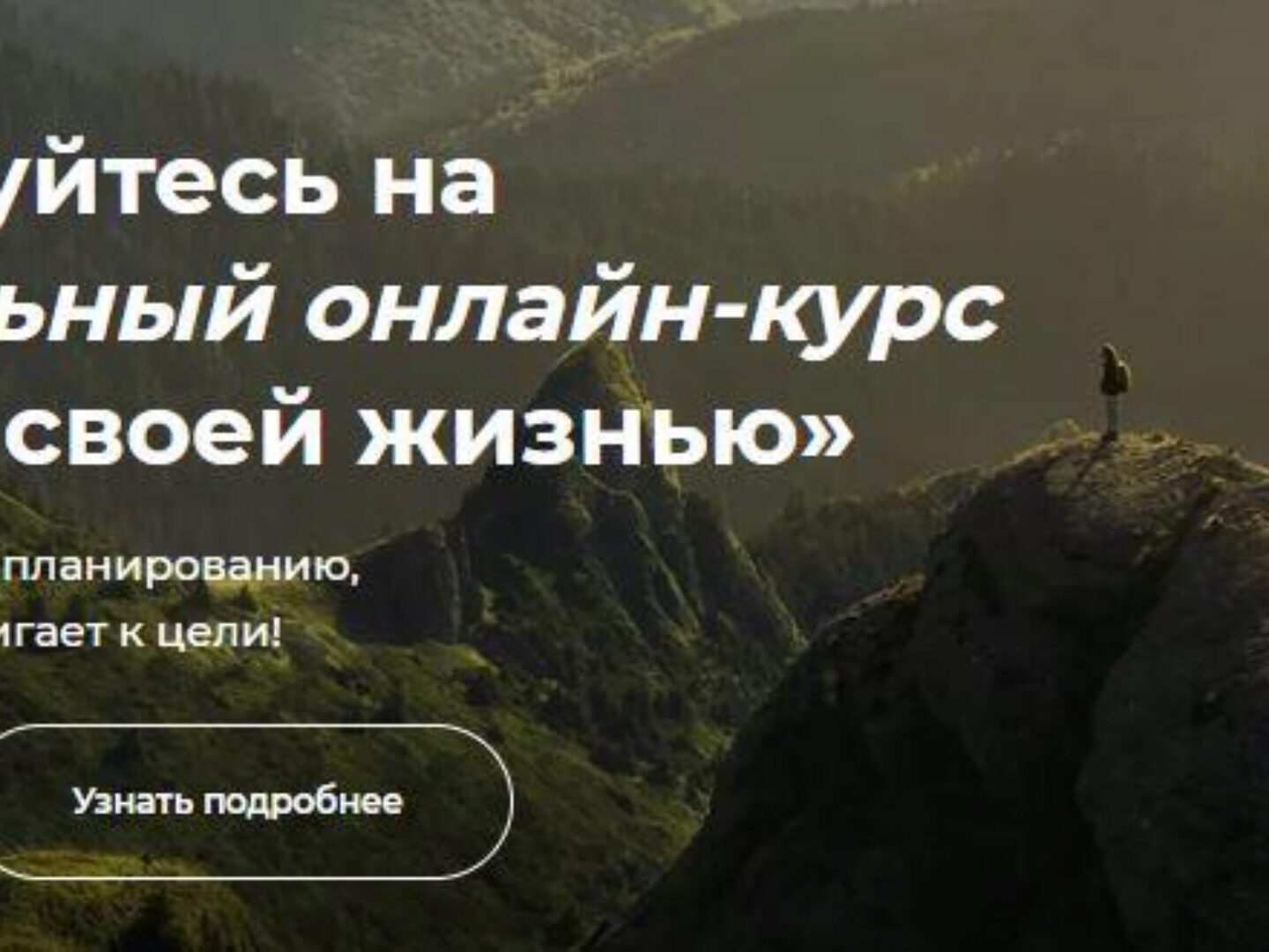 СТАРТ 27 АПРЕЛЯ Вы не придете туда, куда хотите, если СРОЧНО не займетесь долгосрочным планированием. Управлению жизнью надо научиться один раз. Это - ваша опора, дающая веру в себя и удовольствие. Спроектируйте свою Жизнь Мечты. Поймите, что мешает вам жить ею. Проведите аудит своих ресурсов и