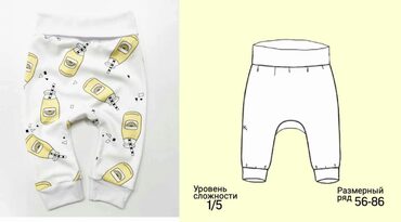 Штанишки из хб кулирки, ластика или интерлока. 5 размеров - 56-62, 62-68, 68-74, 74-80, 80-86. Бонусом идет выкройка распашонки с кнопкой на плече 56 размера.