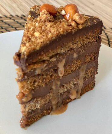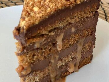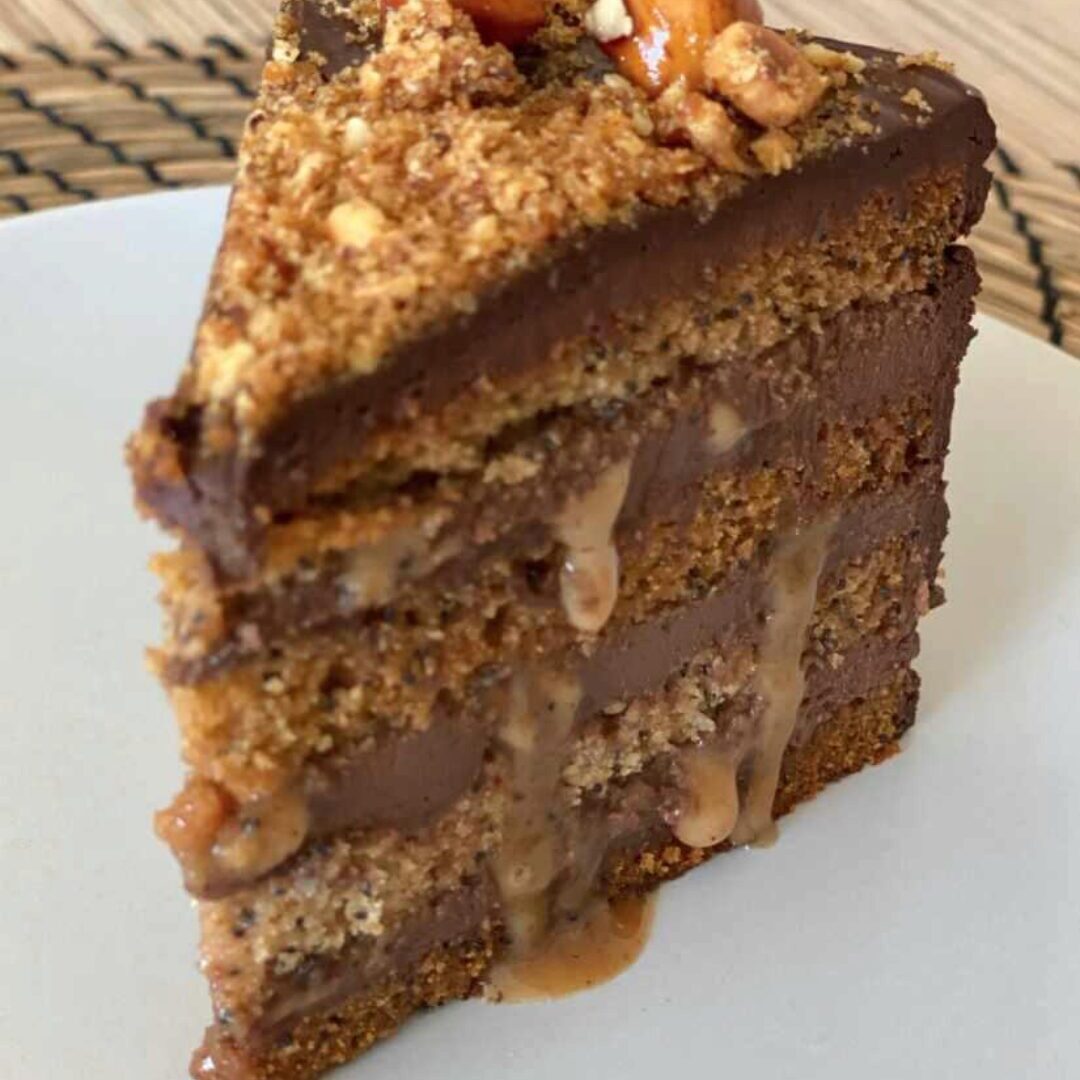 Карамель на фундучных сливках (их готовим сами из фундука и воды), фундучно-шоколадный крем и маковые коржи!