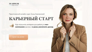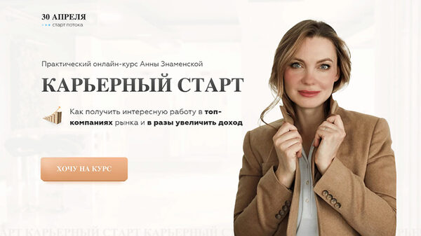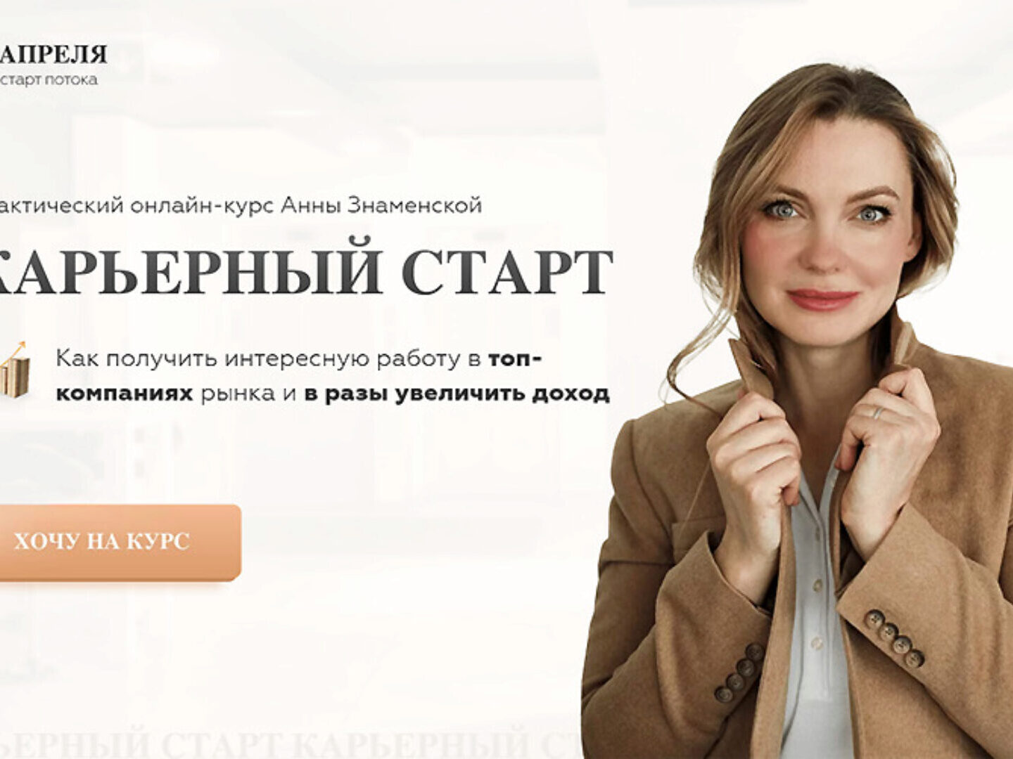 Если вы только начинаете свой карьерный путь или уже имеете за плечами большой опыт — курс «Карьерный старт» от Анны Знаменской поможет вам построить карьеру мечты и выйти на новый уровень в доходах.