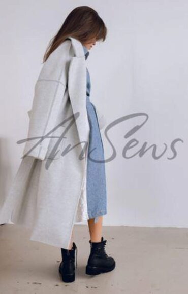 Пальто из двухсторонней ткани, со швами на лицевую сторону изделия. Пальто слегка расклешено к линии низа. Линия плеча спущена, рукав притачной с отворотом. Воротник английский, накладные карманы. Линия талии обозначена поясом на шлевках. Пальто свободного кроя, сморится очень стильно! Длина пальто