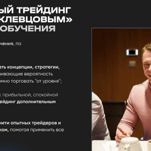 Комплексная программа обучения, по окончанию которой я: Научу тебя использовать концепции, стратегии, методы, кратно увеличивающие вероятность заработка, а не рандомно торговать «от уровня»; Расскажу, как прийти к прибыльной, спокойной торговле и сделать трейдинг дополнительным источником дохода;