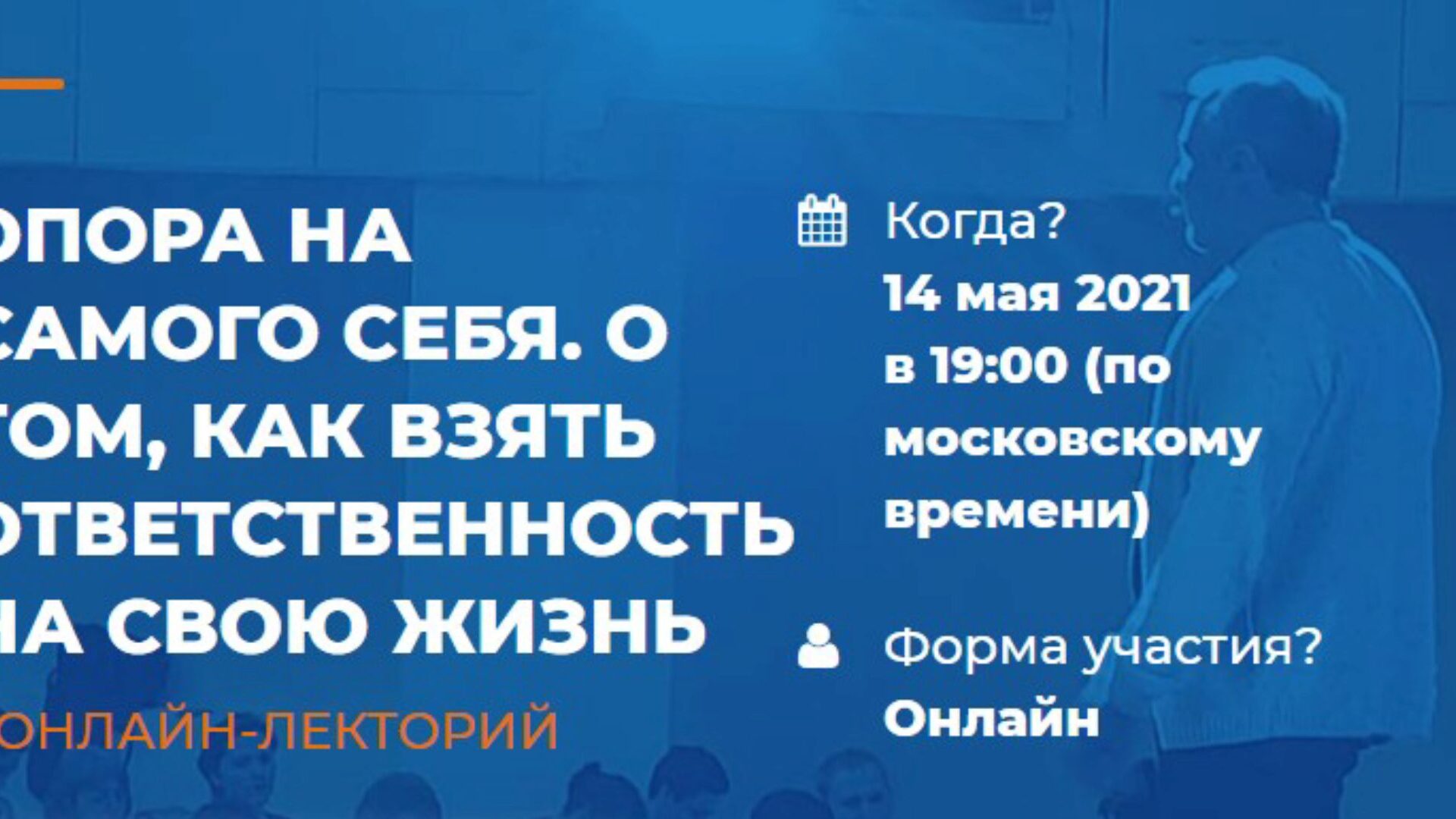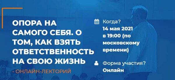 Первый онлайн-лекторий по обретению ответственности (и третий из цикла «Пространство человеческой жизни») состоится 14 мая 2021 года.