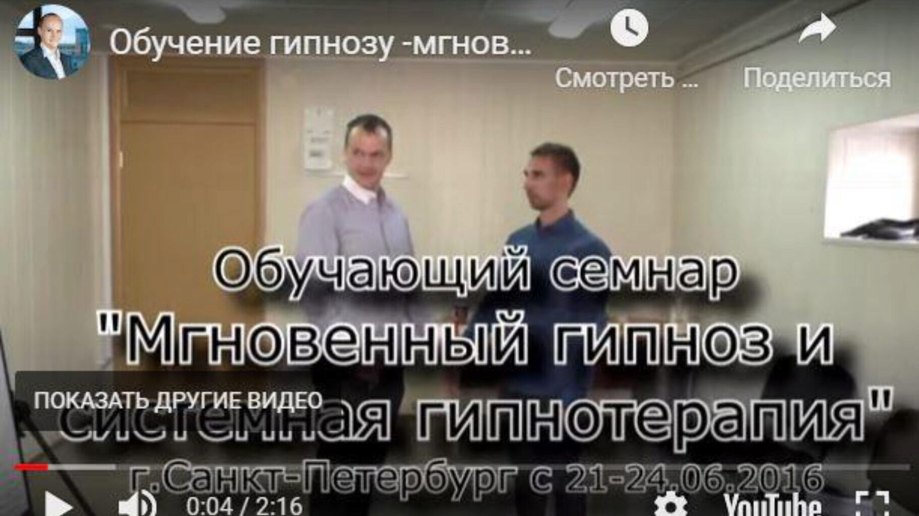 Видеокурс научит вас мгновенно вызывать гипнотические феномены, в несколько секунд переводить человека в состояние глубокого гипноза(сомнамбулизма). Изменит ваше понимание о гипнозе в целом, вы сами удивитесь насколько все может быть быстро и легко. Авторская методика, аналогов нет!