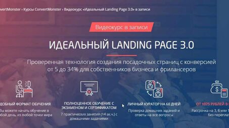 На курсе «Идеальный landing page 3.0» вы получите проверенный алгоритм создания landing page с нуля, который поможет вам разработать высококонверсионную посадочную старницу и получать целевые заявки.