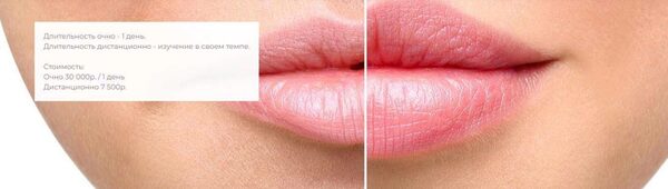 Курс Бьютификация губ наполнен более чем 20 техниками как увеличить губы. Большинство из них — базовые, однако 5-6 являются самыми новыми и топовыми в современной косметологии (такие как плоское увеличение губ, выворачивание губ в плоскости и по наполнению).