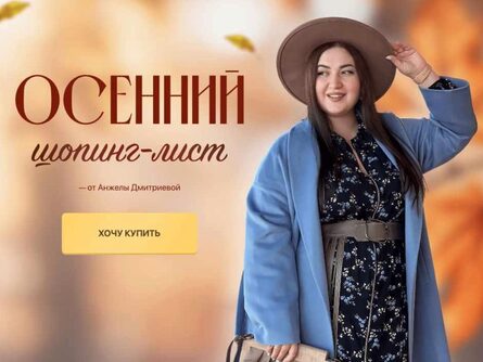 Осенний шопинг-лист - это уникальный капсульный гардероб под любой случай и стиль с рекомендациями на каждый день, составленный Анжелой Дмитриевой. УНИКАЛЬНОСТЬ 1. 19 капсух с осенними образами для девушек plus size различной цветовой палитры 2. В каждой капсуле вещи сочетаются между собой, вы