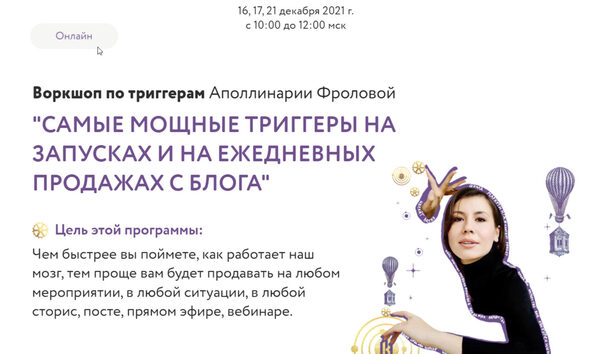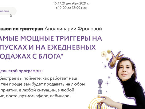 Аполлинария Фролова «Самые мощные триггеры на запусках и на ежедневных продажах с блога»