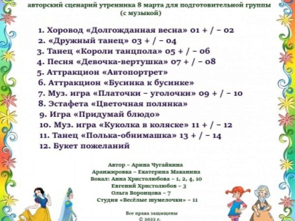 Арина Чугайкина «Сказочные девчонки. Авторский сценарий на 8 Марта для подготовительной группы»