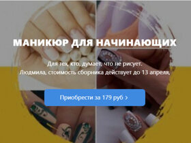 Что вас ждет на онлайн-курсе Научитесь разбираться в материалах для маникюра Узнаете все о форме ногтей Научитесь делать европейский маникюр Научитесь делать классический маникюр ножничками и кусачками Получите полный список всех необходимых материалов со ссылками, узнаете где выгоднее покупать