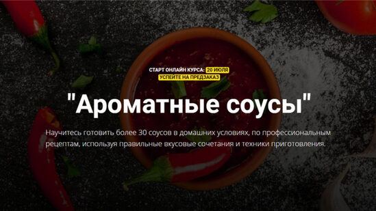 Мини-курс Пикантные соусы Как легко разнообразить и сделать сочными домашние блюда Блюда становятся сочными Легче разнообразить и освежить привычные гречку, макароны, рис, мясо Блюда становятся сытнее Дети и муж доедают с соусами всегда до конца Домашние соусы всегда свежие, вкусные и без добавок Е