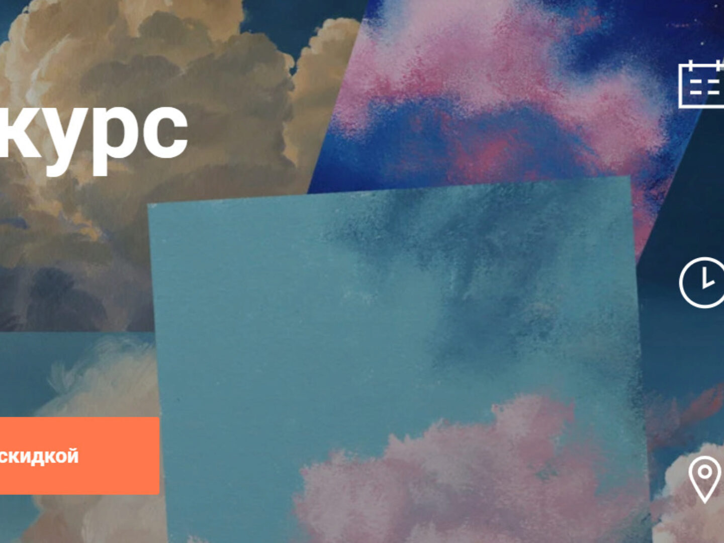 «Облака». Захватывающая картина, бескрайние горизонты полей и лугов на фоне кучевых облаков. На занятии разберём контражур и свечение. Узнаете как передавать глубину атмосферы и объём воздушных масс. Научитесь создавать объёмные картины в смешанной технике с применением воздушной перспективы!