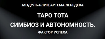 Вашему вниманию предлагаются ПЯТЬ модулей ОНЛАЙН ОБУЧЕНИЯ Таро Тота у Артема Лебедева. Модуль «ОСНОВЫ теории и практики Таро Тота» будет важен для тех, кто хочет освоить работу с картами Таро «с нуля». Подробное описание значений арканов и практические упражнения позволят начинающему получить