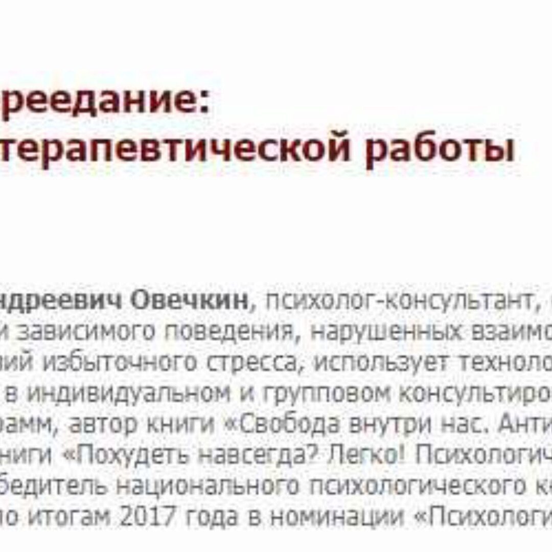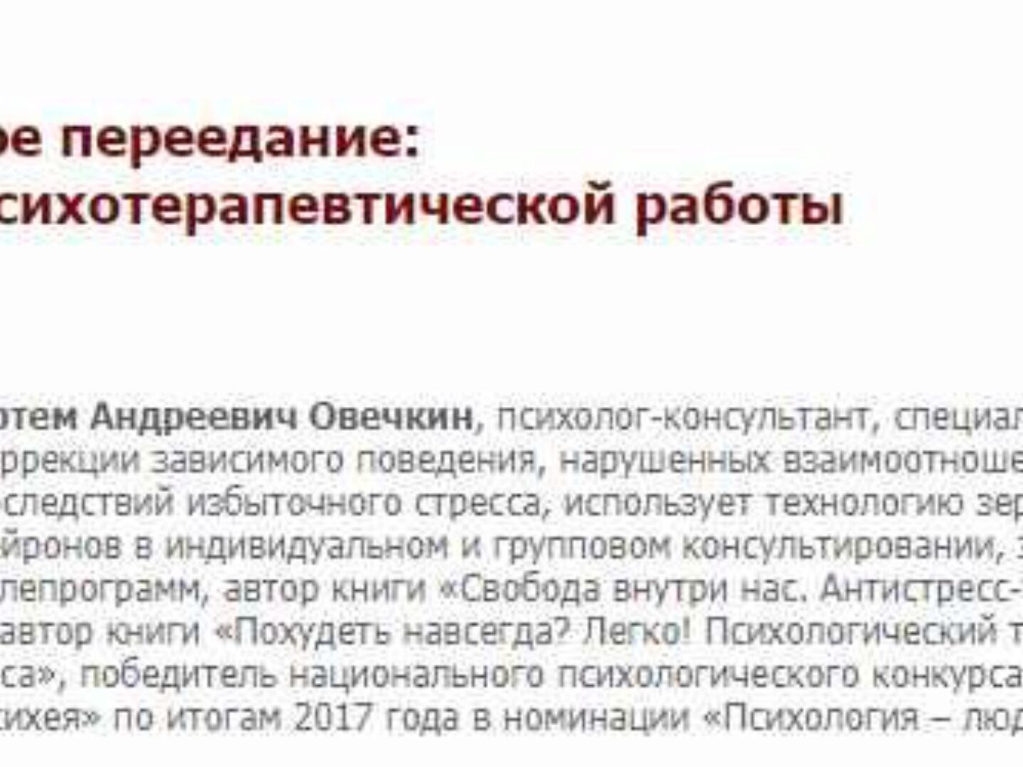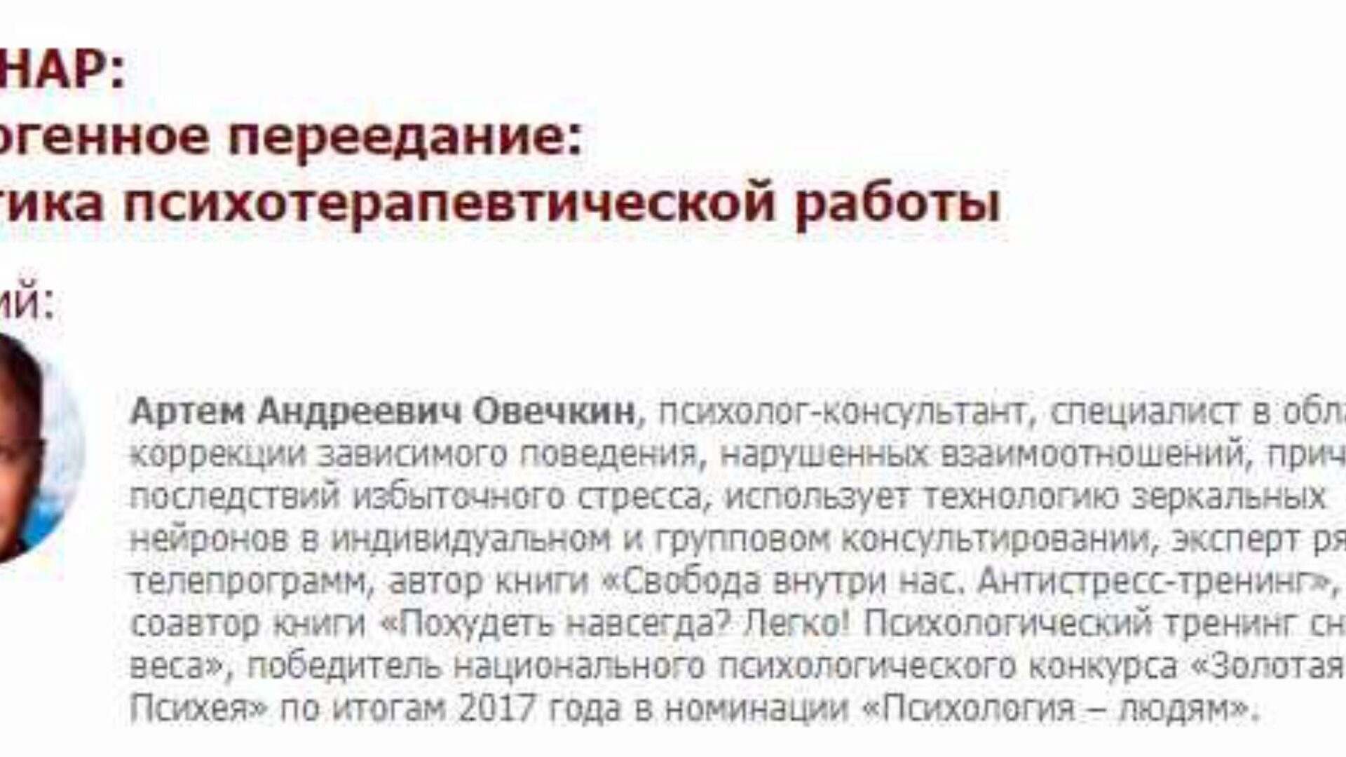 Отзывы о курсе «Психогенное переедание: практика психотерапевтической работы» от Артема Овечкина