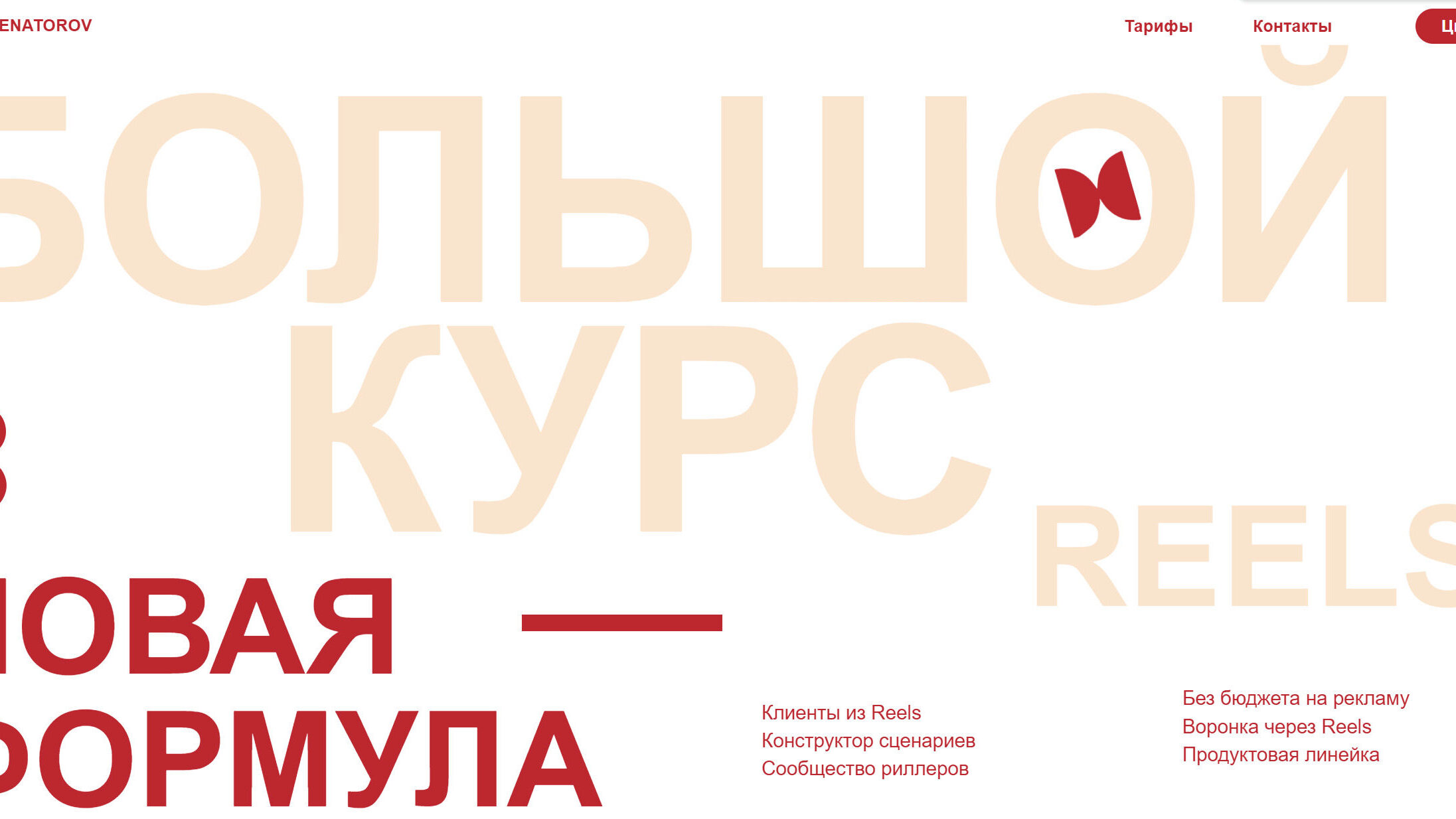 ВАРИАНТЫ ПОИСКА ТЕМ ДЛЯ REELS КОНСТРУКТОР СЦЕНАРИЕВ МЕТОДЫ ВОВЛЕЧЕНИЯ АУДИТОРИИ ПРОДАЮЩИЕ REELS КАК СНИМАТЬ REELS ЗА 15 МИНУТ В ДЕНЬ Тариф Базовый 9 прямых эфиров в Zoom (контент + вопрос-ответ) курс по экспертным Reels «Рилмейкер» курс по копирайтингу «Школа Осознанных Текстов» курс по отстройке