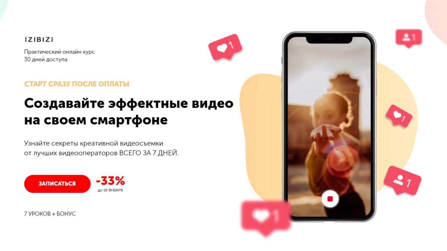 Научитесь снимать красивые, стильные видео, чтобы они «продавали» товары, и могли стать для вас источником дохода всего за 7 дней Курс - это 7 уроков по 10-15 минут