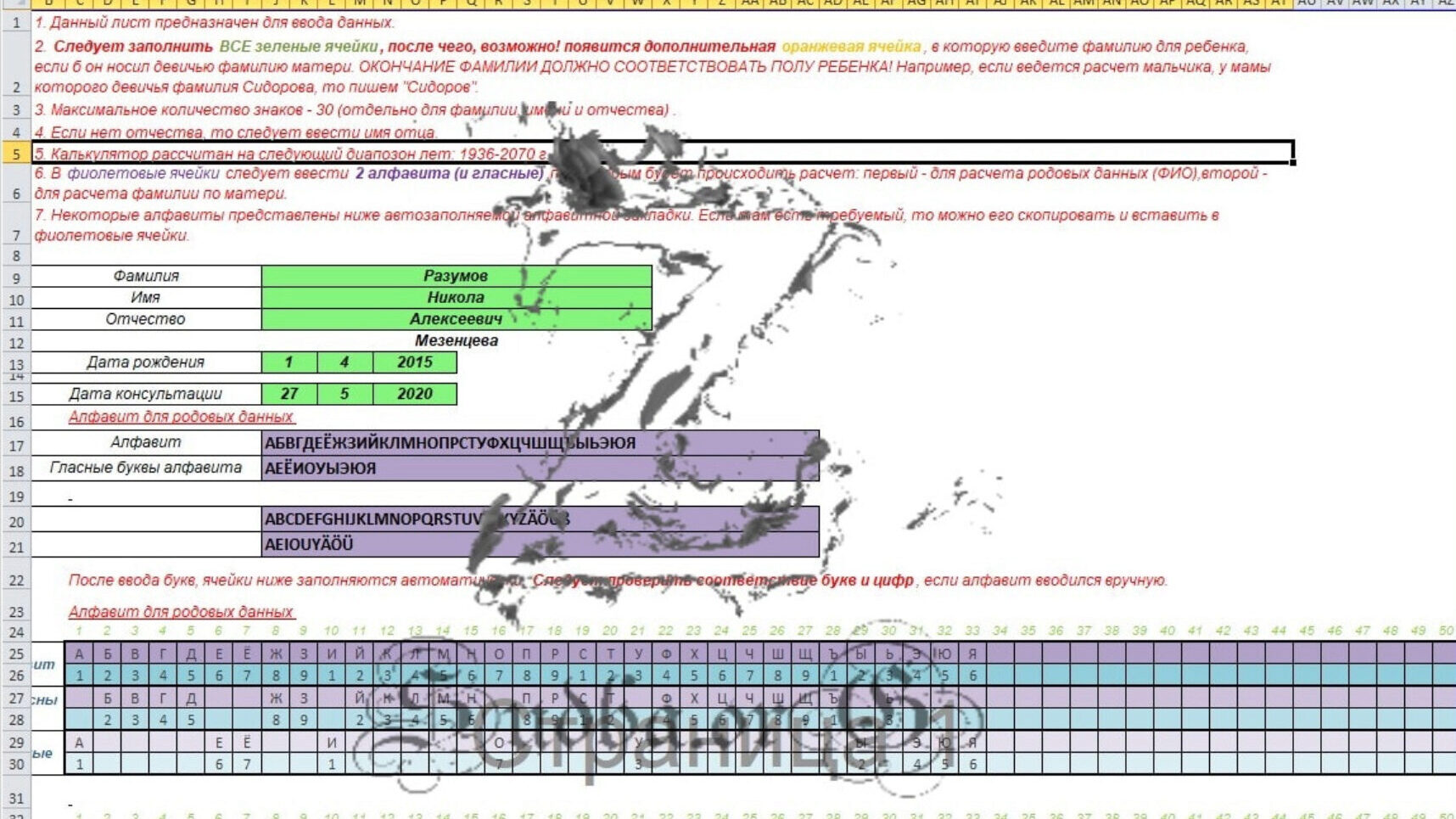 Программа создана для расчета нумерологического по конспектам Айрен и Джули По – Соты кармических болезней. Программа интересна своими трактовками, которые вы можете изменять под себя ведь вы наблюдаете мир и ваш мир может отличаться от наблюдения авторов. Второй плюс программы – быстрый перенос в