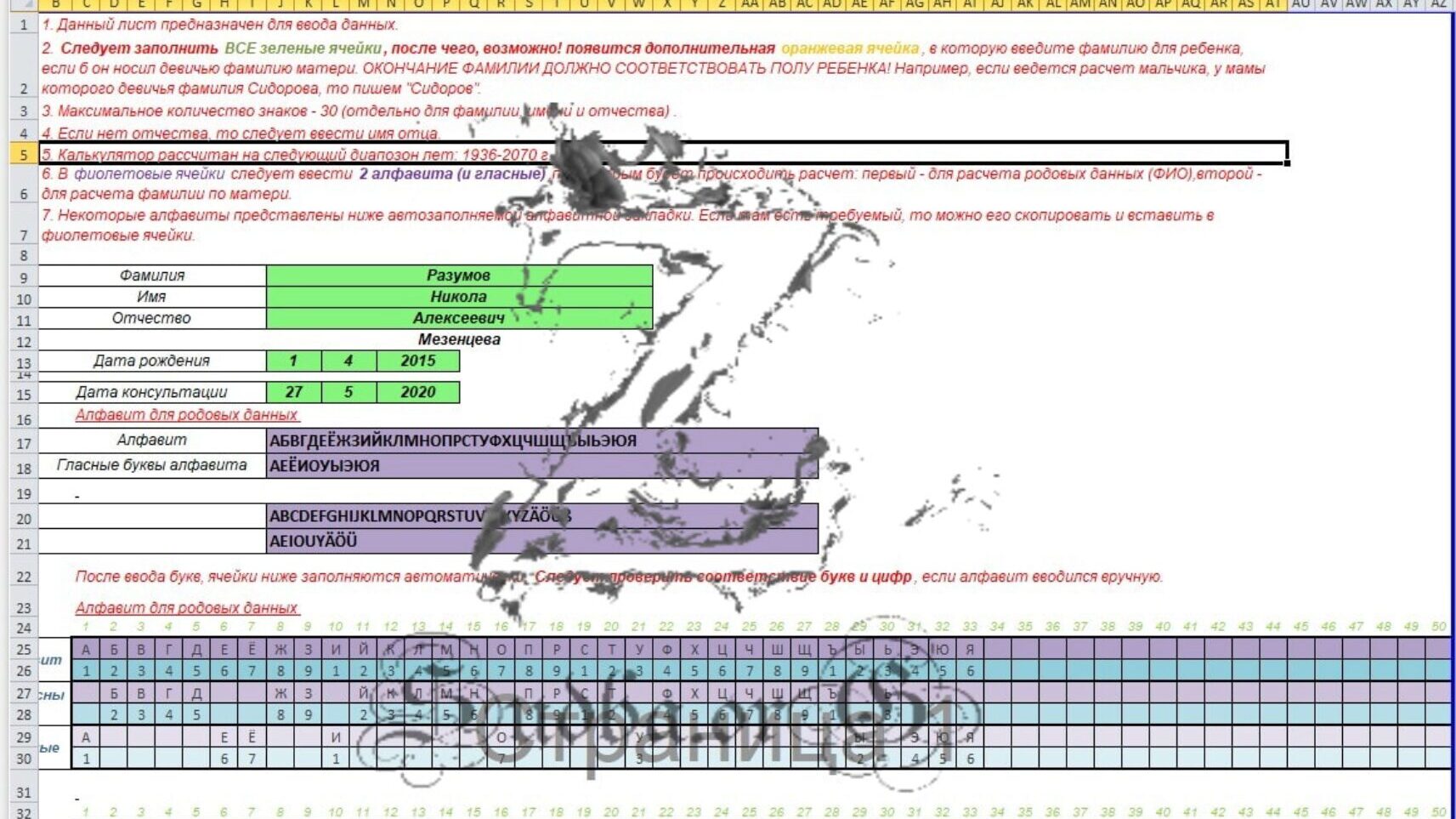Программа считает с 1936 по 2070 год рождения. С помощью программы можно определить качество жизни, таланты взрослого человека. А для ребенка выяснить как, кто и в какой период воспитывать ребенка, чему учить. Программа создана по книге «Родовая карма» известных авторов, но включает в себя и