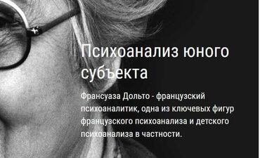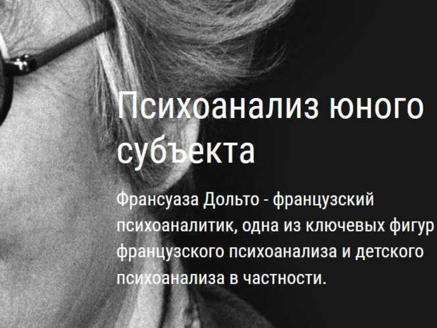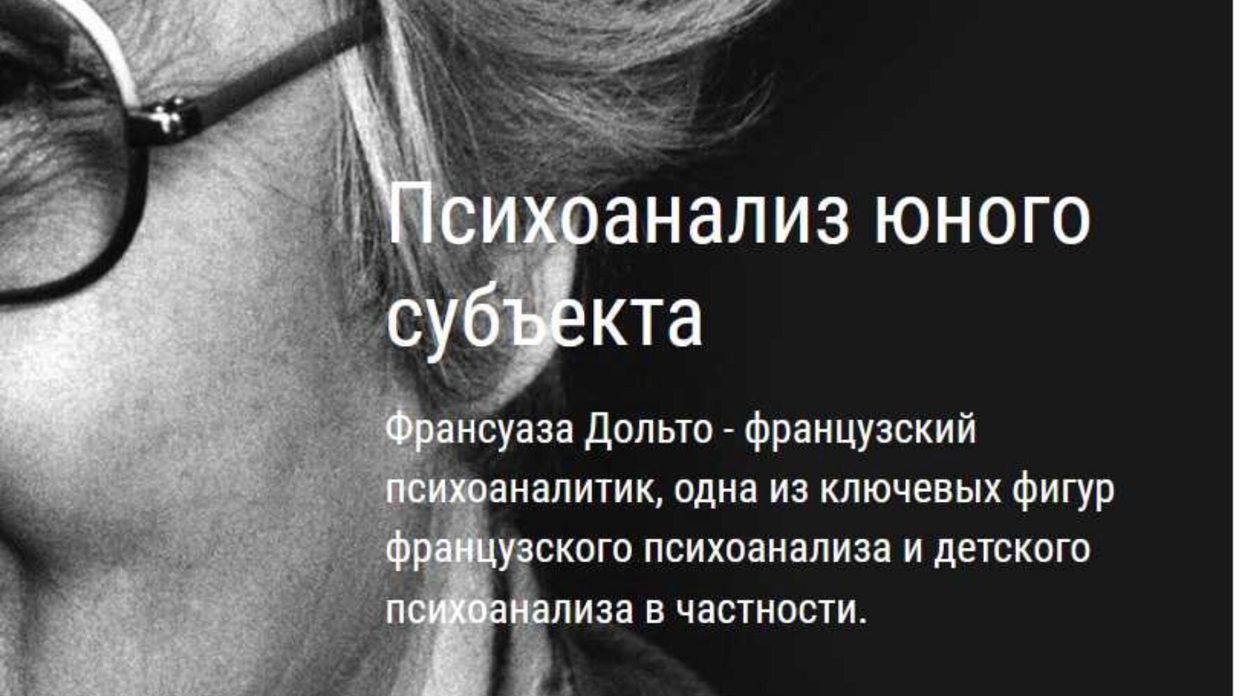 Вы получите записи курса Психоанализ юного субъекта. Психоанализ Франсуазы Дольто (3-й модуль) В программе курса: прояснение основных этических ориентиров подхода к юному субъекту, вопросов детской сексуальности, положений стадии зеркала Лакана и Дольто, логики эдипализации субъекта, различения