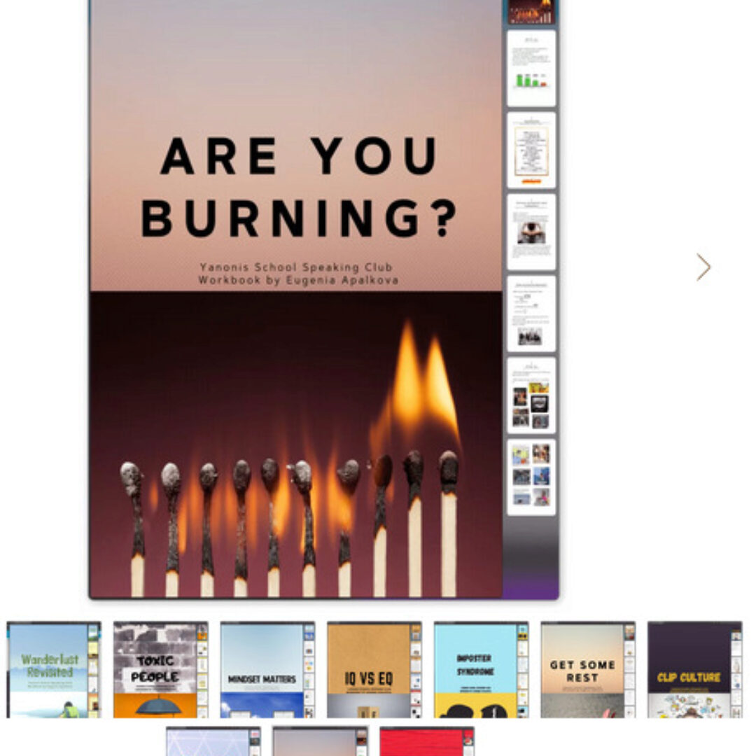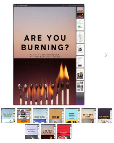 В рабочих тетрадях вы найдёте вопросы для обсуждения в группе, «вшитые» ссылки на видео, статьи, и тщательно собранные наборы карточек Quizlet с лексикой, взятой из этих материалов
