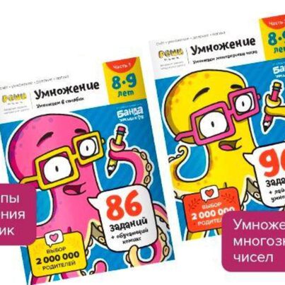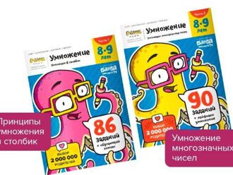 Тетрадь «Умножение, 7-8 лет» Часть 1 Тетрадь «Умножение, 7-8 лет» Часть 2 Первая тетрадь объясняет суть умножения на наглядных примерах через серийное сложение, знакомит детей с математическим обозначением действия. Во второй тетради — море увлекательных заданий и игр, чтобы без труда запомнить