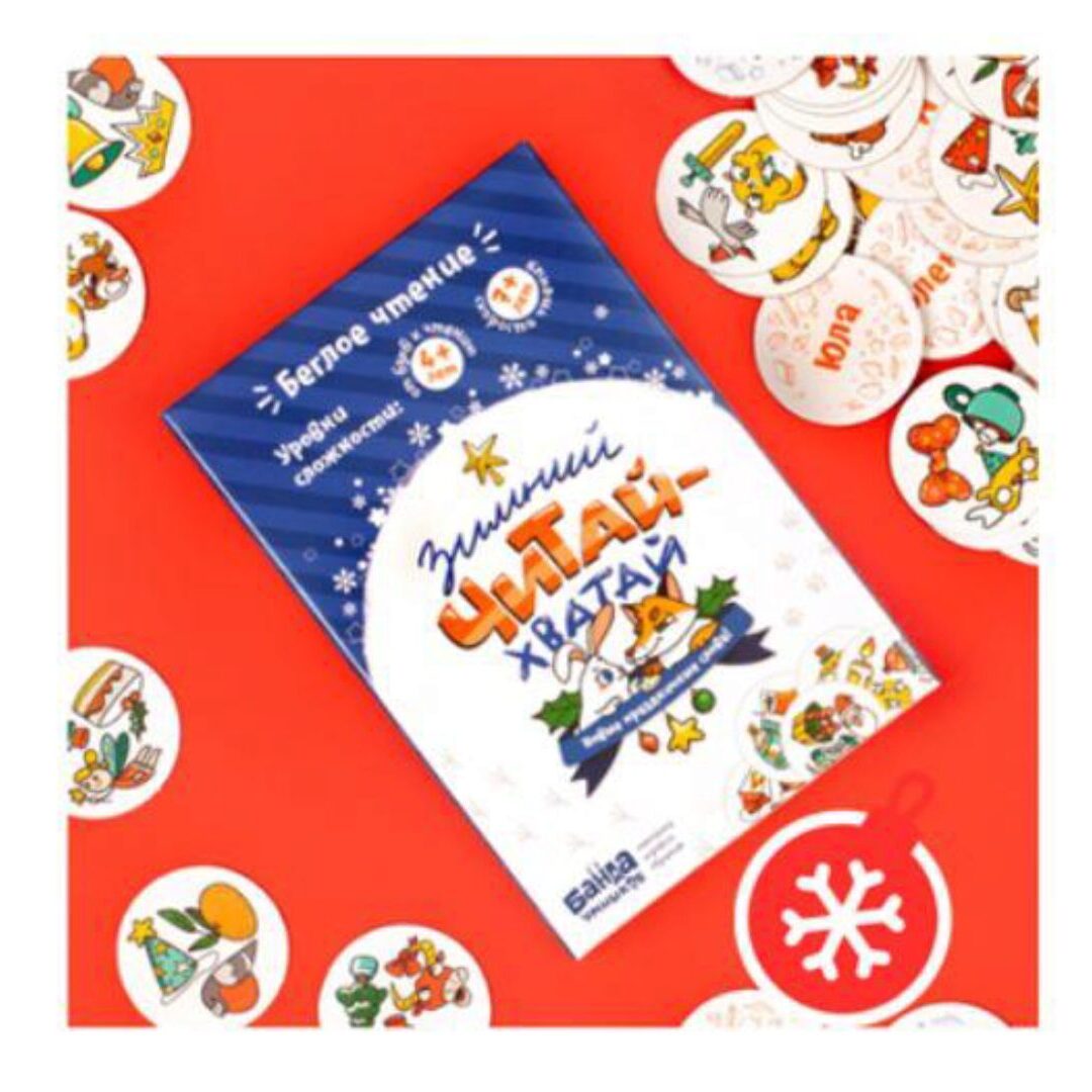 Ура! Выходит новогодняя версия хитовой игры «Читай-Хватай». Целых 96 фишек с новыми словами, которые расскажут всё о зимней поре и о самом волшебном празднике в году! Если ребёнок ещё не умеет читать, то «Читай-хватай» — отличный повод начать! Игра сама подталкивает малышей к тому, чтобы прочитать свои первые слова. А для ребят постарше «Читай-хватай» — самый весёлый и эффективный способ развить скорочтение. При этом игра настолько простая, что на изучение правил уходит буквально 5 минут!