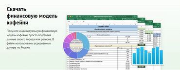 Получите индивидуальную финансовую модель кофейни, просто подставив данные своего города или региона. В файле использованы усредненные данные по России.