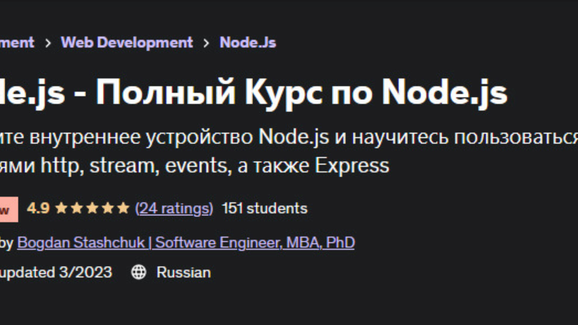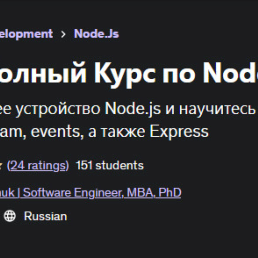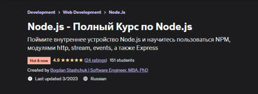 Богдан Стащук «Node.js - Полный Курс по Node.js» — Udemy