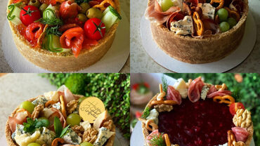 Новый год с «Brutal Cakes » 1. Торт «Сельдь под шубой: 2. Торт »Наполеон с томленой говядиной, карамелизированным луком« 3. Капкейки »Фишловерс« 4. Капкейки »Куриный жульен« 5. Капкейки »Сельдь под шубой « 6. Чизкейк »Паштет-брусника« 7. Чизкейк »Груша-дорблю« 8. Торт »Цифры" 9. 5 видов эклеров