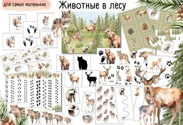 9 наборов (белка, медведь, барсук, волк, лиса, олень, заяц, ёж, кабан)