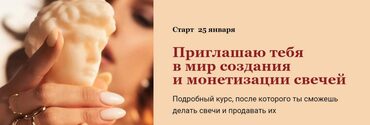 ОБНОВЛЕННАЯ ВЕРСИЯ ЛЕГЕНДАРНОГО МАСТЕР-КЛАССА ПО СВЕЧЕВАРЕНИЮ 2.0! Этот мастер-класс для вас, если вы: мечтаете запустить бизнес, который отражает ваши ценности хотите научиться создавать эко-свечи и зарабатывать на любимом деле уже умеете варить свечи, но вам не хватает знаний и опытного