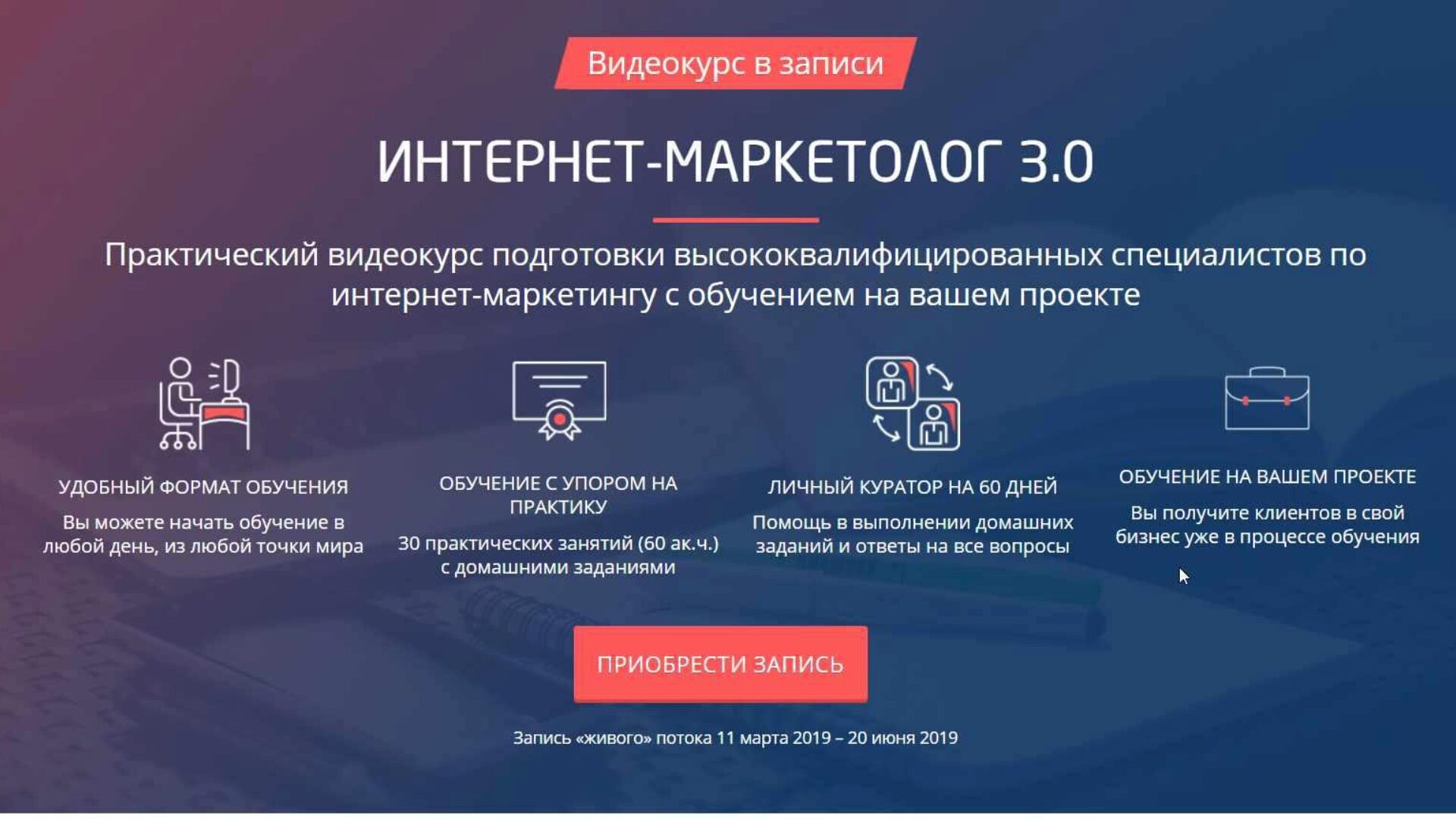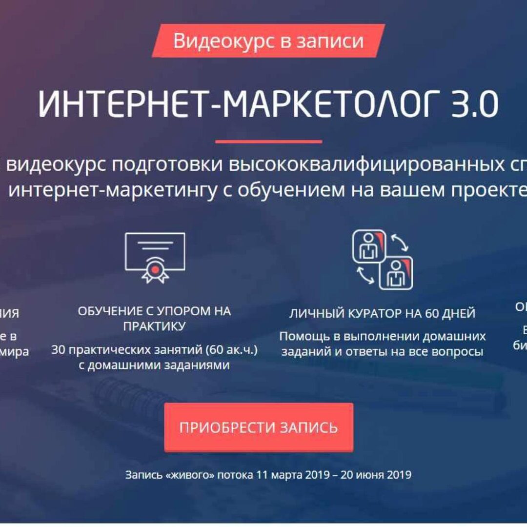 «Интернет-маркетолог 3.0» — это запись самого свежего «живого» потока курса, который проходил с 23 июля 2019 по 29 октября 2019.
