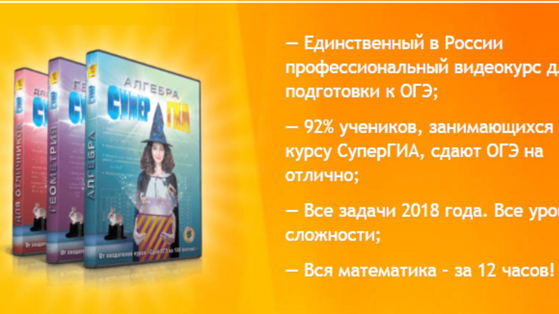 Именно по таким принципам построен наш видеокурс. В нем есть все необходимое для успешной сдачи ОГЭ. Посмотрев его, даже двоечник сможет освоить математику и сдать ОГЭ на хорошие баллы. Это методика реальной помощи школьникам, отработанная нами за много лет.
