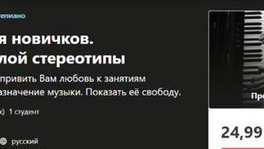 Этот курс ориентирован на взрослых людей (от 14 до 75 лет), которые ещё никогда не садились за клавишный инструмент (пианино, фортепиано, синтезатор). Курс рассчитан на 2-3 месяца обучения и включает в себя 20 частей (до 5 видеоуроков в каждом) Курс содержит 6 тестов и 10 практических заданий. Курс