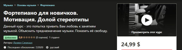 Даниил Синицын «Фортепиано для новичков. Мотивация. Долой стереотипы» — udemy