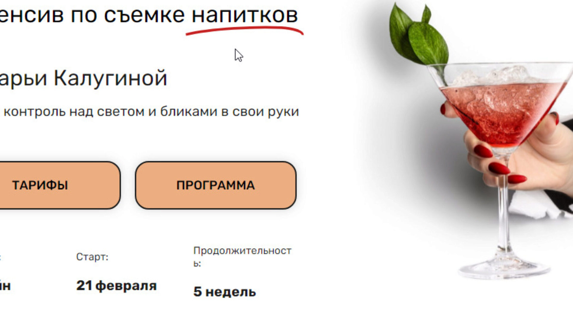 Дарья Калугина «Интенсив по съемке напитков» — Contrse
