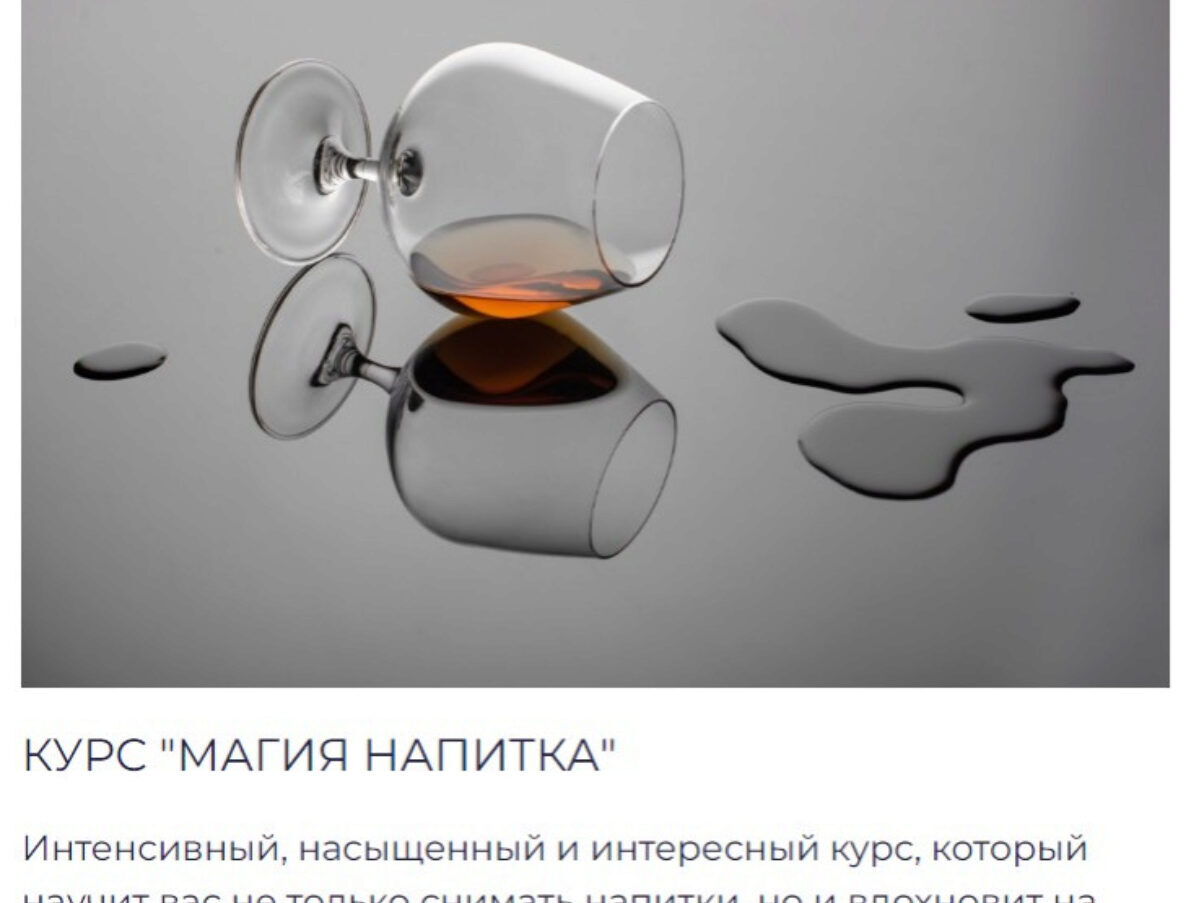 12 уроков из основной программы курса Магия напитка, охватывающие все виды напитков. 6 дополнительных новых уроков. 33 видео по съемке и стайлингу. 3 видео с обработкой в Photoshop Схемы света с ЕО и ИО 5 недель интенсивной работы