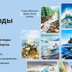 Вы научитесь находить лучшую композицию и подбирать оптимальные приемы и техники под разные художественные задачи. Вы будете писать по-сухому и по-мокрому, использовать белую краску, резервирующую жидкость, салфетки, марлю, воду и даже мыло, научитесь передавать любые фактуры и реалистично показывать самое сложное освещение или отражения в воде. Курс составлен так, чтобы вы постепенно, от простого к сложному, изучили все акварельные премудрости и смогли взяться за любой сюжет с водной стихией после его прохождения.