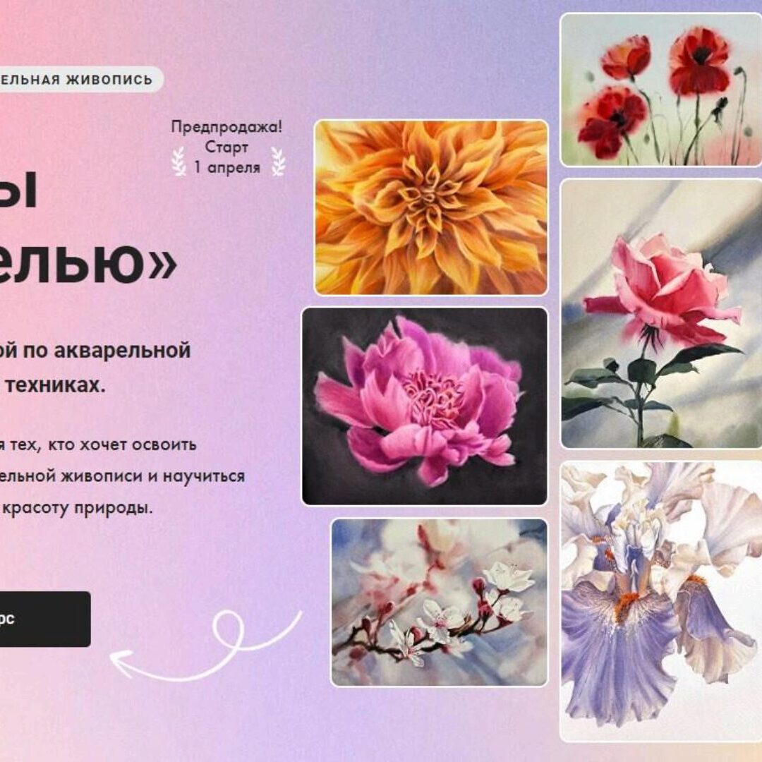 На занятиях мы научимся передавать цвет и форму растений, поработаем с разными акварельными приемами. Вы создадите 9 живописных произведений с изображением цветов и научитесь воплощать на бумаге красоту природы.