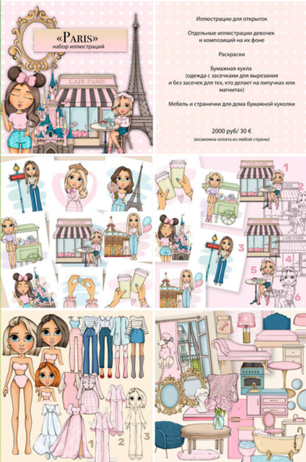 Дарья Львова «Набор иллюстраций Paris» — Palmpink Illustrations