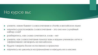 - узнаете какие бывают словосочетания и чанки на английском языке