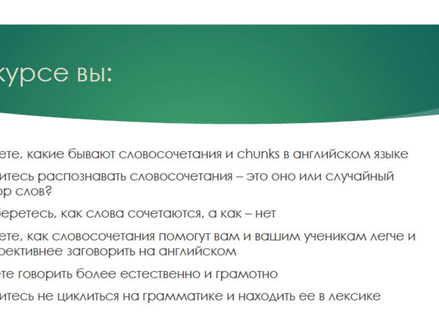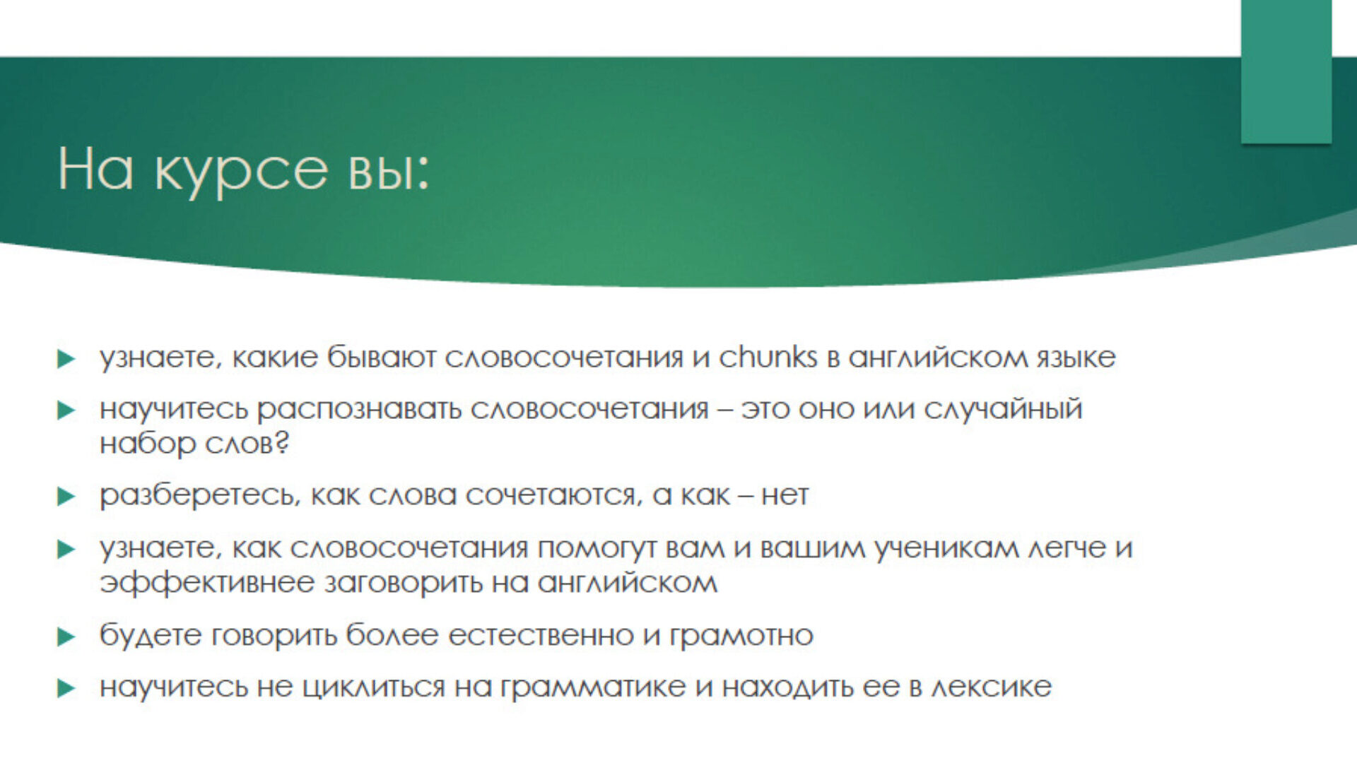 - узнаете как словосрчетания помогут вам и вашим ученикам легче и эффективнее заговорить на английском