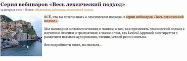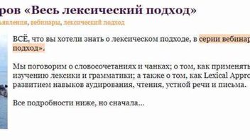Все шесть вебинаров вместе станут курсом «Лексический подход». В дальнейшем, вероятно, добавлю практические занятия в группах.