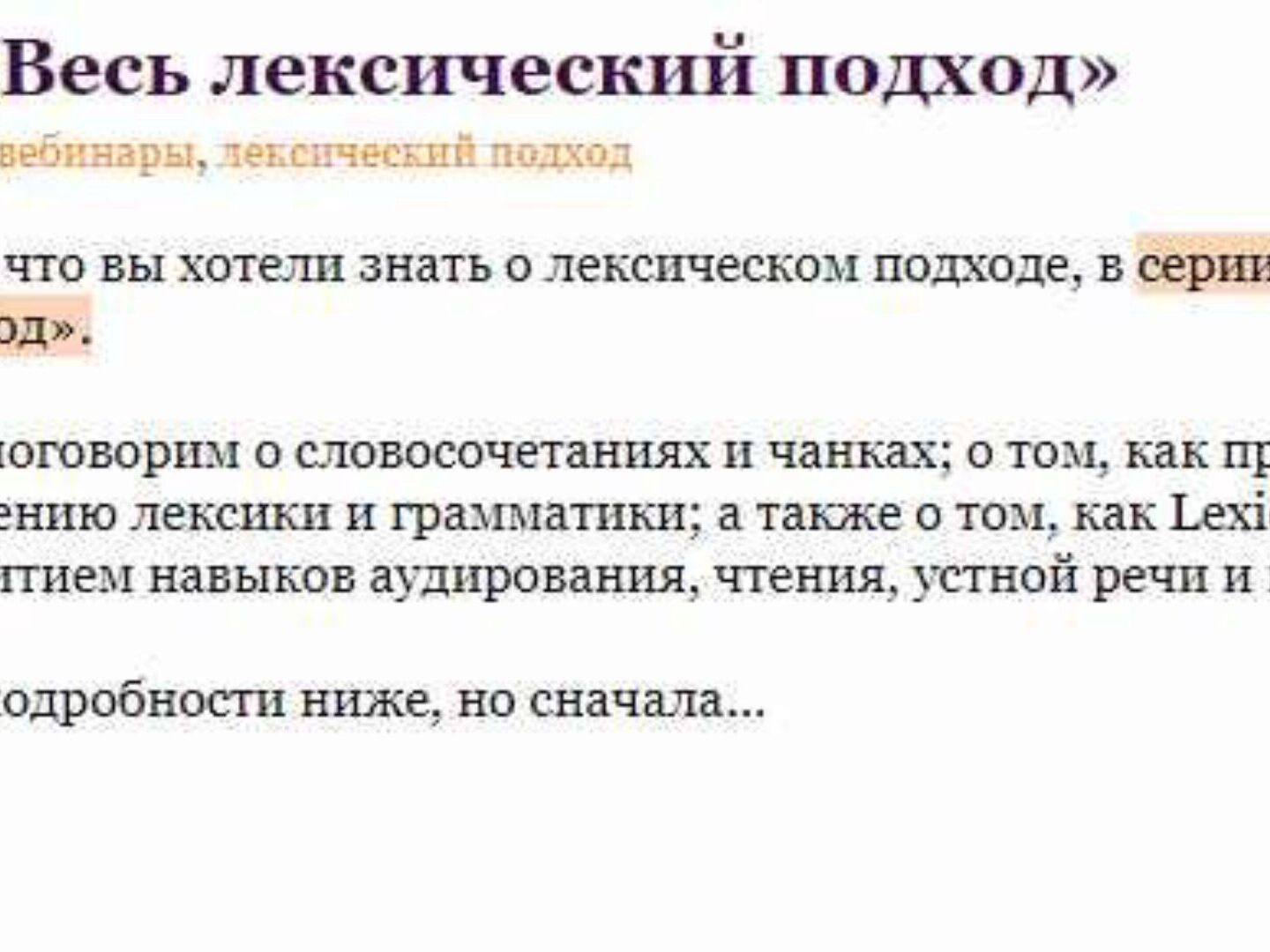 2 «Лексический подход» – большой обзорный вебинар по всему ЛП