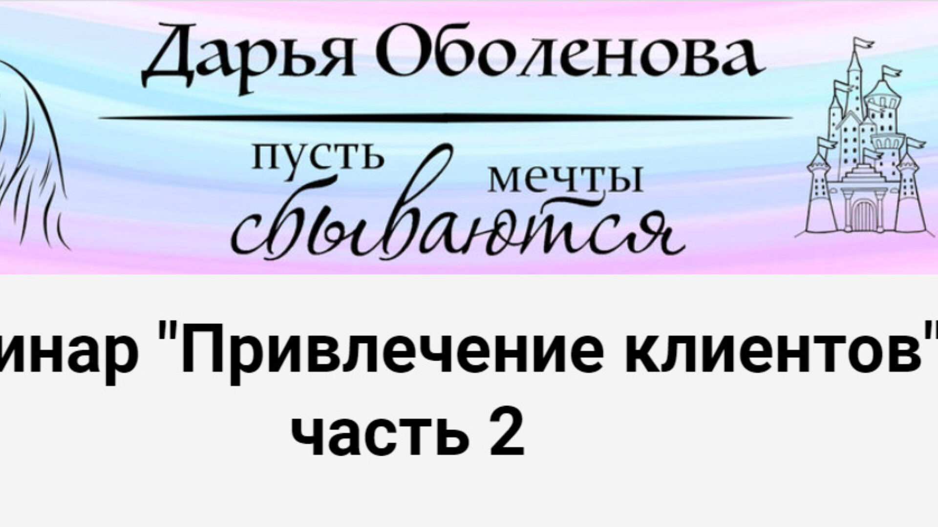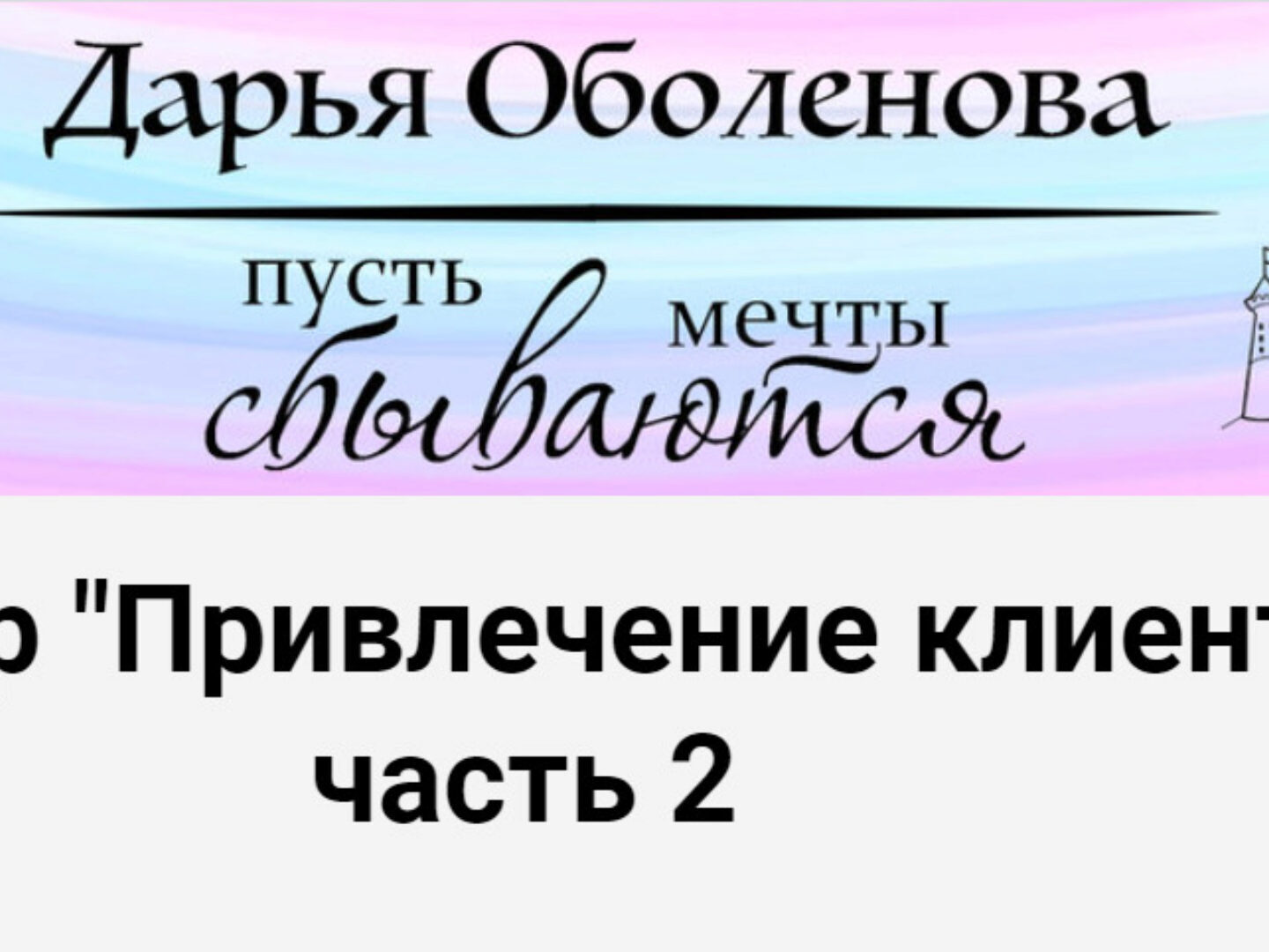 Отзывы о курсе «Привлечение клиентов - часть 2. Тариф Индивидуальный» от Дарьи Оболеновой