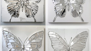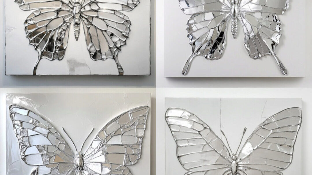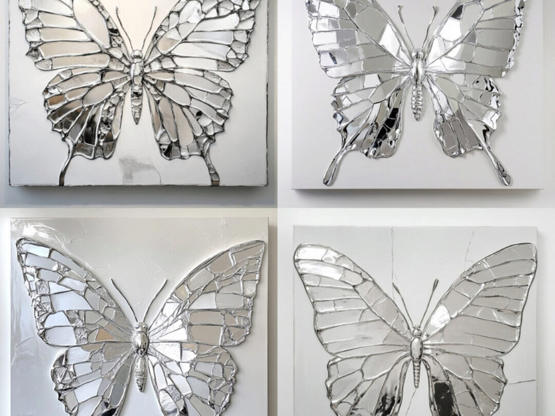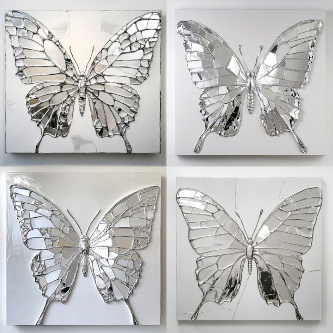 Начнем с того, что создадим под конкретный интерьер картину с выпуклой зеркальной бабочкой на светлом фоне! Будет очень красиво!