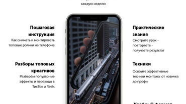 Ищешь удобный и понятный видеоредактор для iOS или AndroidХочешь создавать эффектные сторис, видео для Instagram, ТikTok, YouTubeСтремишься быстро научиться монтировать на смартфоне Благодаря курсу ты: За 6 уроков освоишь главные инструменты видеоредактора InShot Научишься качественно монтировать