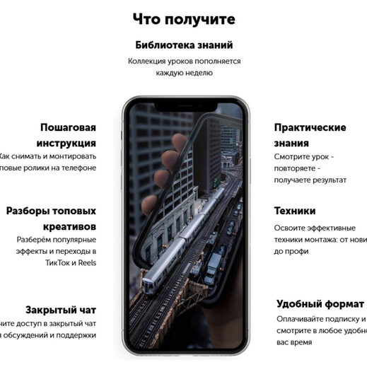 - Научитесь делать все актуальные приёмы и эффекты, которые сейчас попадают в тренды Reels, Tik-Tok